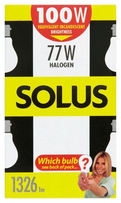 | Description | Solus (100W = 77W) BC Clear A55 Halogen E/Saver |