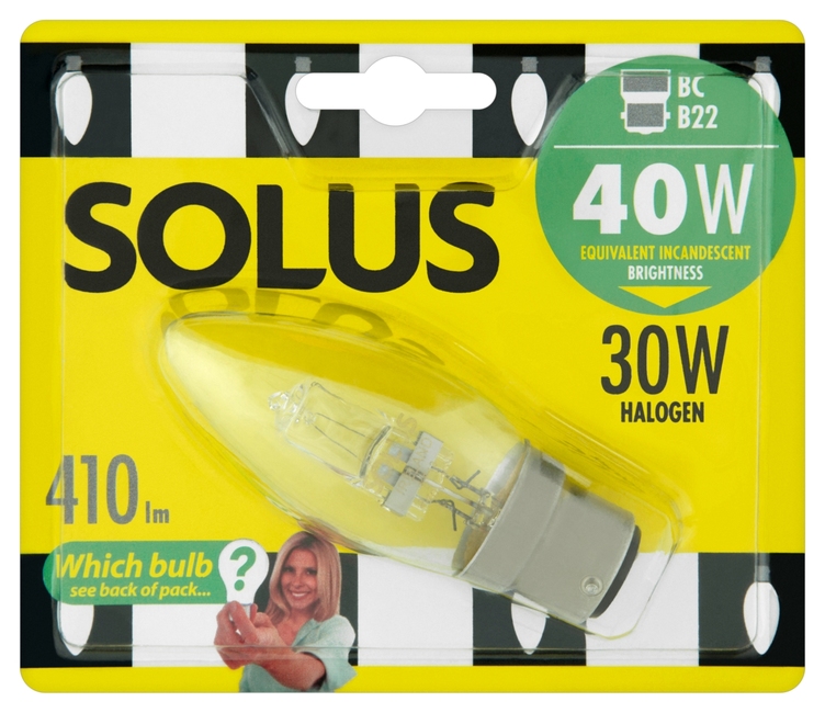 Solus (40W=30W) BC Clear Candle Halogen E/Saver