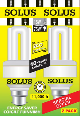 | Description | Solus 15 Watt BC CFL E/Saver 2PK |